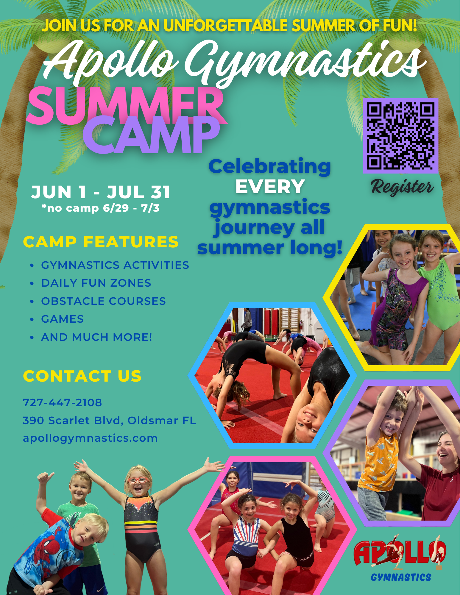 Adventure awaits at Apollo! Flip into gymnastics activities, daily fun zones, obstacle courses, games, and much more. Our USAG-certified coaching team is eager to teach your child and guide them through every step of their gymnastics journey. Whether a beginner or advanced, all levels are welcome! Join today to enhance skills, boost confidence, and form lasting friendships.